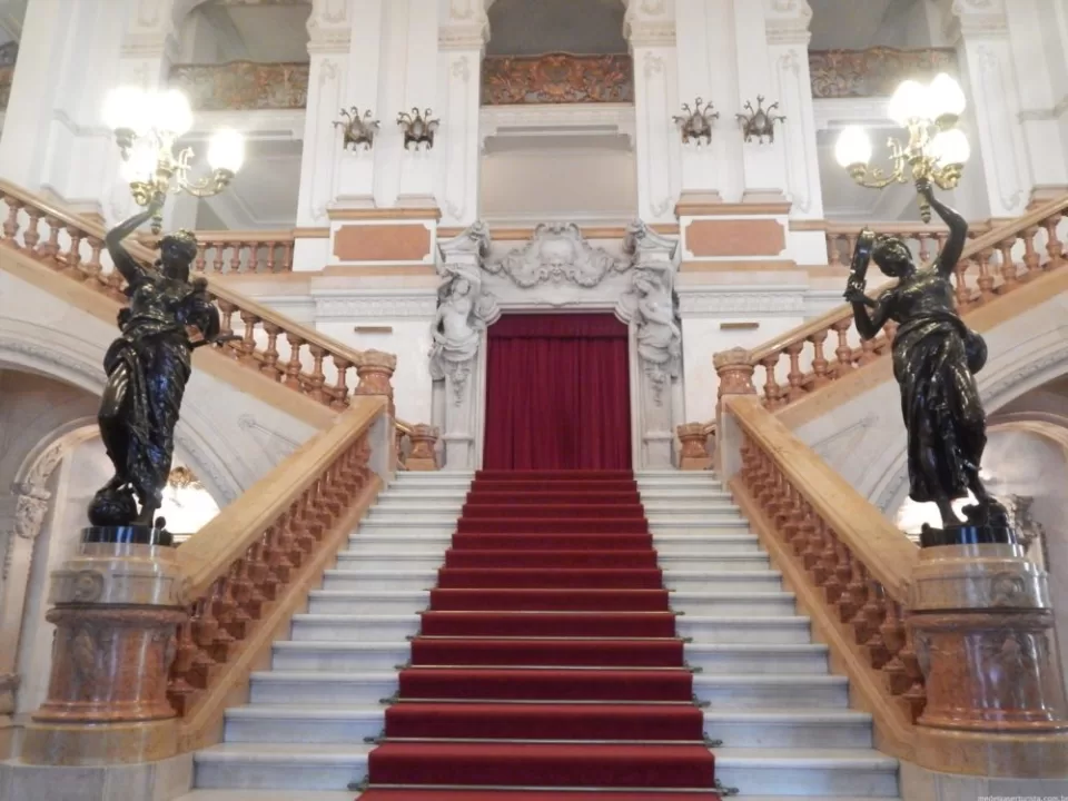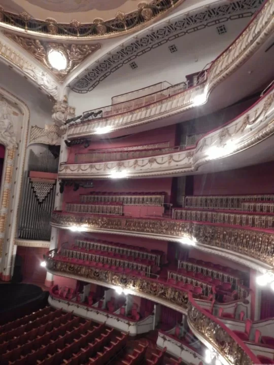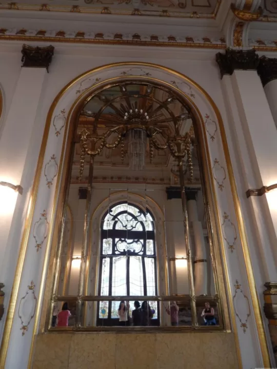 Lá dentro, o básico. Grupo dividido em dois, fotos sem flash, vídeos e áudios proibidos. A visita passa pelo hall de entrada, pela “sala dos espelhos” copiada de Versailles e pela tão esperada sala de concertos. Cada espaço é explicado pela monitora do grupo. E não se engane: o prédio centenário tem elevadores antigões, o que significa que até os velhinhos conseguem acompanhar a visita (já que o percurso todo tem poucos degraus, só uma escada é mais sofrida. Mas rola o elevador, então…).